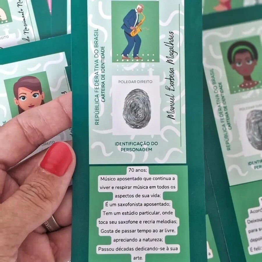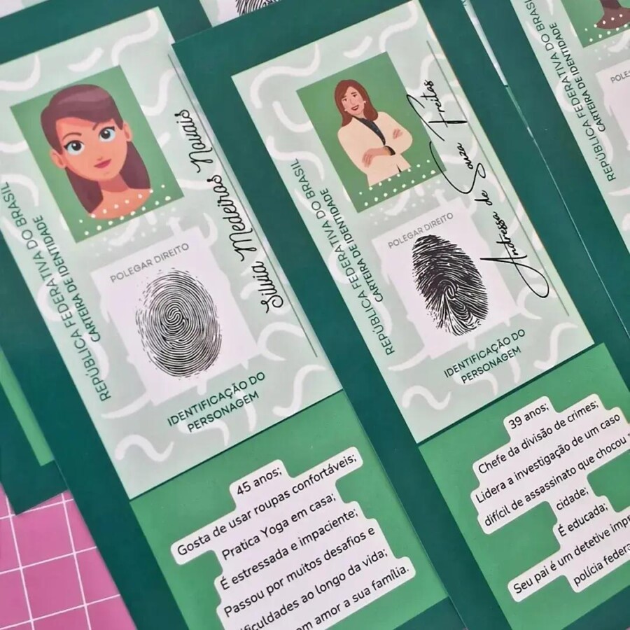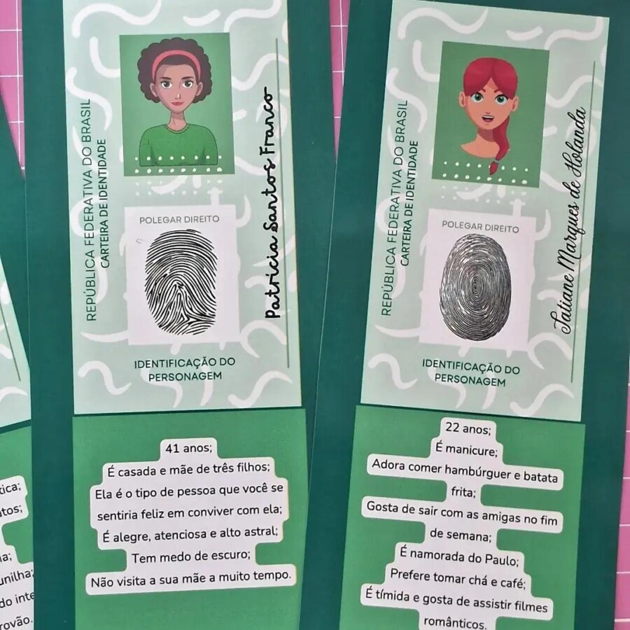 Recurso de auxílio para a produção de texto. São 42 fichas com informações sobre os personagens.